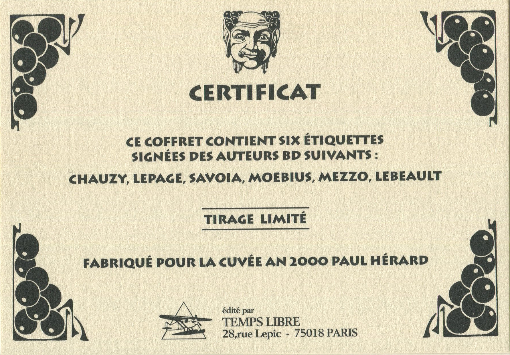 Cette étiquette fait partie du coffret cuvée an 2000 Paul Hérard, il représente le dessin de Savoia sur la technologie.